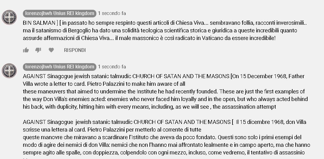 Speriamo che al più presto frati preti vescovi cardinali tornino a parlare di uno dei punti importanti della tradizione cristiana cattolica come fa Quirino Salomone