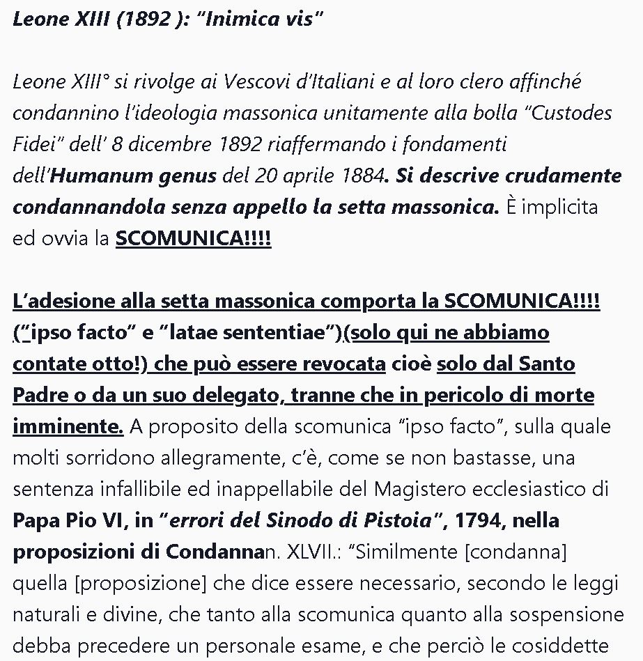 TUTTI i poteri occulti massonici ed esoterici del Nwo, sperano, che, la mia fede: nel ruolo di Unius REI, e in particolare, la mia posizione sul Trono di Dio: possa decadere.. perché, contrariamente, la loro agenda talmud: di poter realizzare il dominio mondiale di satana, distruggere Israele e la civiltà ebraico-cristiana, non si potrebbe compiere! tutti i documenti come la humanumgenus, sono delle scomuniche contro la massoneria!