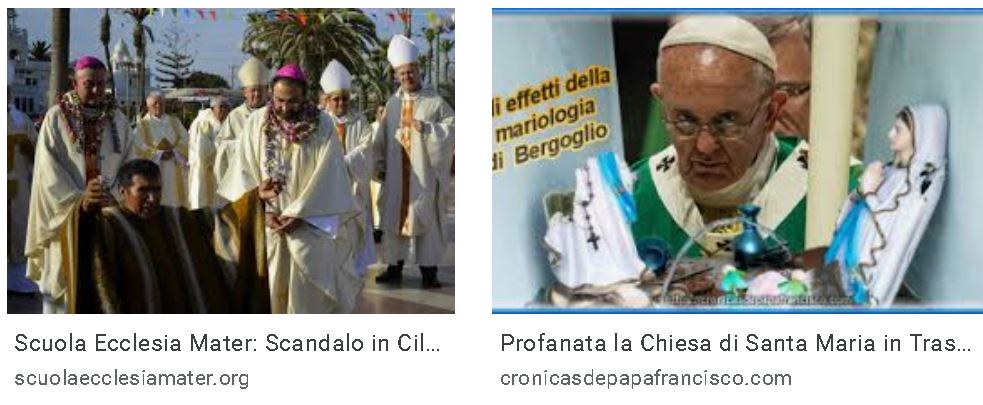 Viceversa, la cosiddetta “chiesa” di Bergoglio non esita a chiudere le chiese, arrogandosi l’empio diritto di negare a Dio il culto pubblico e di privare i fedeli della grazia dei Sacramenti per miserabile connivenza col potere civile. Essa umilia la Santissima Trinità al livello degli idoli e dei demoni con i sacrileghi rituali di una religione neopagana ; strappa la corona e lo scettro a Cristo Re, in nome del Mondialismo massonico; offende la Corredentrice e Mediatrice per non indispettire gli eretici Suoi nemici; tradisce il dovere di predicare il Vangelo in nome del dialogo e della tolleranza; tace e adultera la Sacra Scrittura e i Comandamenti di Dioper compiacere lo spirito del mondo;manomette le parole sublimi e inviolabili della Preghiera che Nostro Signore ci ha insegnato; profana la santità del Sacerdozio, cancellando nei chierici e nei religiosi lo spirito di penitenza e di mortificazione e abbandonandoli alle seduzioni del demonio; rinnega duemila anni di storia, disprezzando le glorie della Cristianità e l’intervento sapiente della divina Provvidenza nelle vicende terrene; segue zelante le mode e le ideologie, anziché plasmare le anime alla sequela di Cristo; si rende schiava del Principe di questo mondo, pur di mantenere prestigio e potere; giunge a predicare il culto blasfemo dell’uomo rifiutando i diritti sovrani di Dio. E quando Bergoglio parla, i fedeli sono quasi sempre scandalizzati e disorientati, perché le sue parole sono l’esatto opposto di quanto essi si aspettano di udire dal Vicario di Cristo. Costui chiede obbedienza alla propria autorità, nel momento in cui egli la usa per distruggere il Papato e la Chiesa, contraddicendo tutti i suoi Predecessori, nessuno escluso.