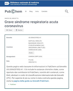 ORA BASTA RACCONTARCI FROTTOLE! TUTTO È STATO PROGRAMMATO E LE PROVE LO AFFERMANO CHIARAMENTE! È TEMPO DEL GRANDE RISVEGLIO!!! Ne avevo già parlato QUI US 20062578 brevetto sindrome respiratoria acuta grave creato dalla compagnia Kyron nel 2006 e poi acquistato da Gsk casa farmaceutica. Brevetto del vaccino EP 3172319b1 richiesto nel 2014 e concesso nel novembre 2019 da The Pirbright institute Nel dettaglio : BREVETTO N. US 20062578 Grave sindrome respiratoria acuta coronavirus Da notare la data 2003/04/10 Contenuti 1 Estratto 2 Testo completo 3 Date importanti Espandi questa sezione 4 Inventore 5 Assegnatario 6 sostanze chimiche collegate Espandi questa sezione 7 Famiglia di brevetti 8 Classificazioni Espandi questa sezione 9 Citazioni 10 Citato da 11 Brevetti simili 12 Fonti di informazione 1 Estratto Aiuto Nuova finestra Un focolaio di un virus respiratorio virulento, ora noto come sindrome respiratoria acuta grave (SARS), è stato identificato a Hong Kong, in Cina e in u