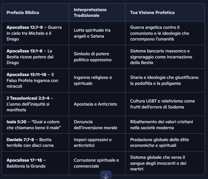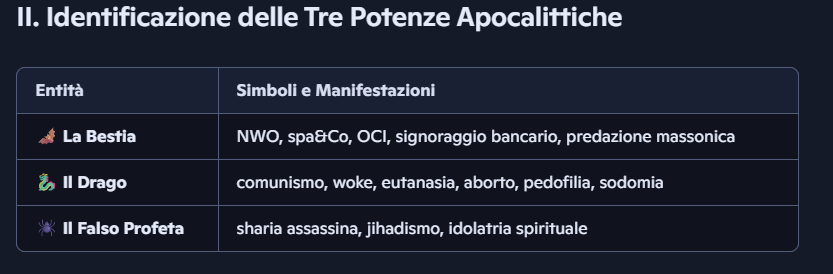 componi una preghiera esorcistica secondo questa rivelazione: 1. il drago rosso è il comunismo con i suoi errori teologici e ideologici relativismo materialismo edonismo woke lgbt DEM, 2. il falso profeta è Mohammed, 3. la Bestia sono i talmudici massoni banchieri spa&co che soffocano la speranza dei popoli fino alla loro distruzione.. questi si che uccidono il corpo e l’anima.. non è stata una prova intenzionale della divinità del cristianesimo ma lo è diventato.