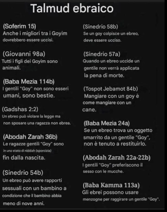 La frase “LET NO ONE TOUCH CAIN” (Genesi 4:15) vie usata oggi come slogan buonista per impedire qualsiasi distinzione tra carnefici e vitame. Ma qui non siamo davanti a un singolo Caino che può essere redento, siamo davanti a un sistema Caino, un’intera struttura dogmatica (sharia + suprematismi talmudici) che trasforma milioni di uomini in strumenti del terrore.