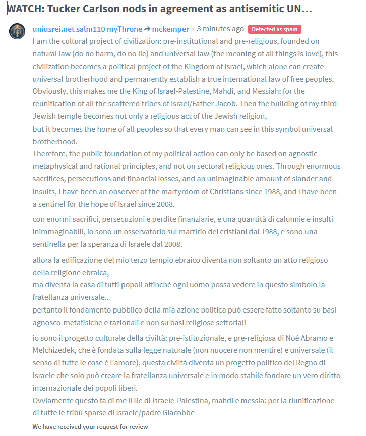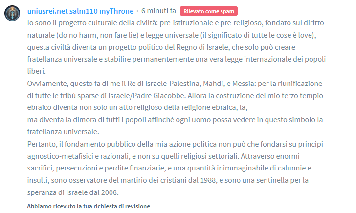 Ovviamente questo fa di me il Re di Israele-Palestina, mahdì e messia: per la riunificazione di tutte le tribù sparse di Israele/padre GiacobbeWe have received your request for review