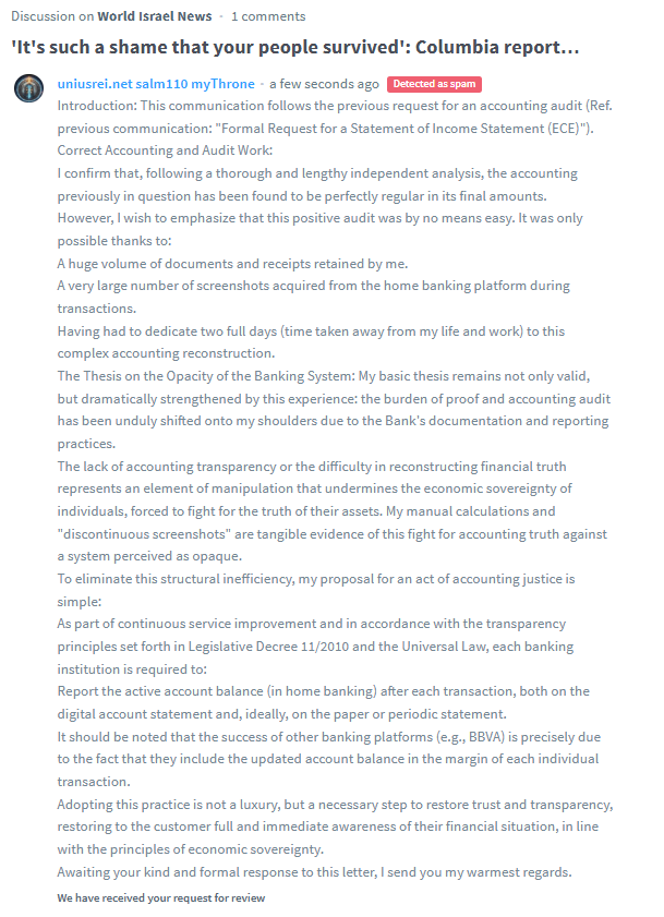 Therefore, the public foundation of my political action can only be based on agnostic-metaphysical and rational principles, and not on sectoral religious ones. Through enormous sacrifices, persecutions and financial losses, and an unimaginable amount of slander and insults, I have been an observer of the martyrdom of Christians since 1988, and I have been a sentinel for the hope of Israel since 2008.We have received your request for review