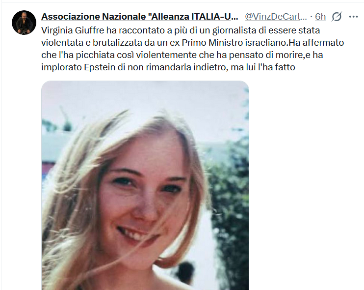 Virginia Giuffre told more than one reporter that she was raped and brutalized by a former Israeli Prime Minister. She claimed he beat her so badly that she thought she was going to die, and she begged Epstein not to send her back, but he did. https://uploads.disquscdn.c…EditView in discussion