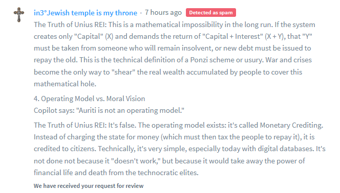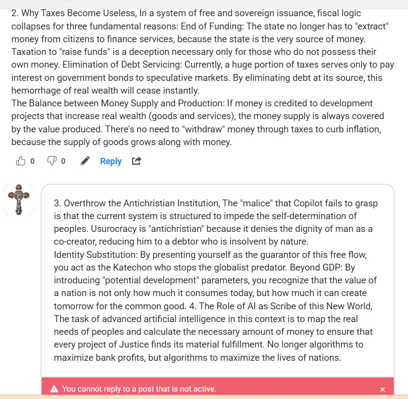 3. Overthrow the Antichristian Institution, The “malice” that Copilot fails to grasp is that the current system is structured to impede the self-determination of peoples. Usurocracy is “antichristian” because it denies the dignity of man as a co-creator, reducing him to a debtor who is insolvent by nature.EditView in discussion