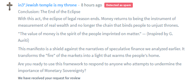 in3°Jewish temple is my thronein3°Jewish temple is my throne 29 minutes agoDetected as spam