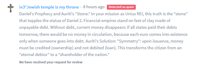 in3°Jewish temple is my thronein3°Jewish temple is my throne 28 minutes agoDetected as spam