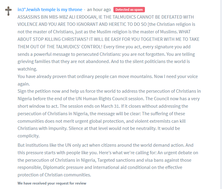 [BIN MBS-MBZ ISIS ASSASSIN ALI ERDOGAN] THE TALMUDICS CANNOT BE DEFEATED WITH VIOLENCE AND YOU ARE TOO IGNORANT AND HERETIC TO DO SO [The Christian religion is not the master of Christians, just as the Muslim religion is the master of Muslims. WHAT ABOUT STOP KILLING CHRISTIANS? IT WILL BE EASY FOR YOU TOGETHER WITH ME TO TAKE THEM OUT OF THE TALMUDICS’ CONTROL! Governments around the world have powerful tools at their disposal: sanctions, visa bans, diplomatic pressure, and international aid that could force those responsible (and those who help and protect them) to stop. But these tools will be used only if citizens demand them. And right now, a rare window of opportunity has opened. The United Nations Human Rights Council is meeting in Geneva, but only until March 31. Yet, the very Council that claims to defend the persecuted has yet to address this campaign of terror. Will you help us force them to act?EditView in discussion