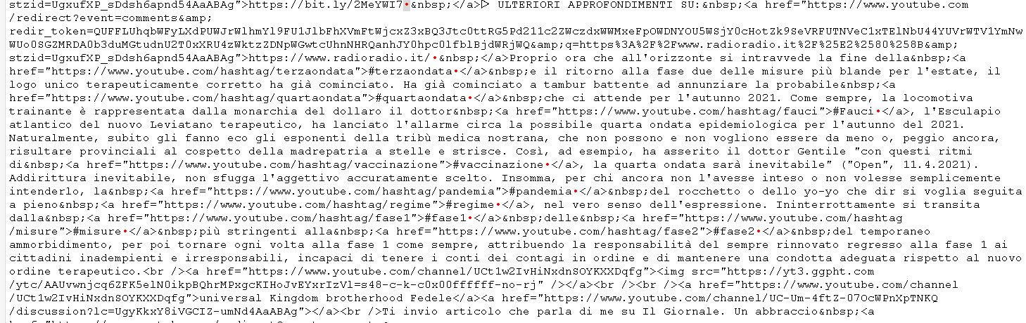 Hello. How are you? I got nuked by Twitter after calling Queen Elizabeth a pedophile. Sounds like you have some interesting information to share. Ciao. Come stai? Sono stato bombardato da Twitter dopo aver definito la regina Elisabetta pedofila. Sembra che tu abbia alcune informazioni interessanti da condividere. ANSWER obviously, there is a direct and indirect connection, with the whole DEM regime, Deep State, occult power, esoteric agenda, masonic system, which is satanic-lgbtq-technocratic-neoliberal-mafia-masonic-western lobbying that our leaders have created! Certainly the most ruthless dictatorship of the Tower of Babel eye of lucifer (big brother) in the history of mankind. So the Jewish-Masonic logic of the antichrist, of alies abductions and Dio Moloch OWL al bohemian grove have created. and it\’s a wonder to me, like after 14 years of isolation, how the priests of satan of the CIA did not filter your email too! if I didn\’t protect your identity I would sentence you to death and this is why it is in your interest to share your identity with me, what is your twitter channel? ANSWER ovviamente, esiste una connessione diretta ed indiretta, con tutto il regime DEM, Deep State, occult power, esoterica agenda, masonic system, che è satanico-lgbtq- tecnocratico-neoliberista-mafioso-massonico-lobbistico occidentale che i nostri leader hanno creato! Di sicuro la più spietata dittatura di torre di Babele occhio di lucifero (grande fratello) della storia del genere umano. Quindi la logica ebraico-massonica dell\’anticristo, di alies abductions e Dio Moloch OWL al bohemian grove abbiano creato. ed è una meraviglia per me, come dopo 14 anni di isolamento, come i sacerdoti di satana della CIA non abbiano filtrato anche la tua mail! se non proteggessi la tua identità ti condannerei a morte.. e questo è il motivo per cui è nel tuo interesse condividere con me la tua identità, quale è il tuo canale di twitter? Il giorno dom 4 lug 2021 alle ore 05:46 ha scritto: Hello. How are you? I got nuked by Twitter after calling Queen Elizabeth a pedophile. Sounds like you have some interesting information to share.