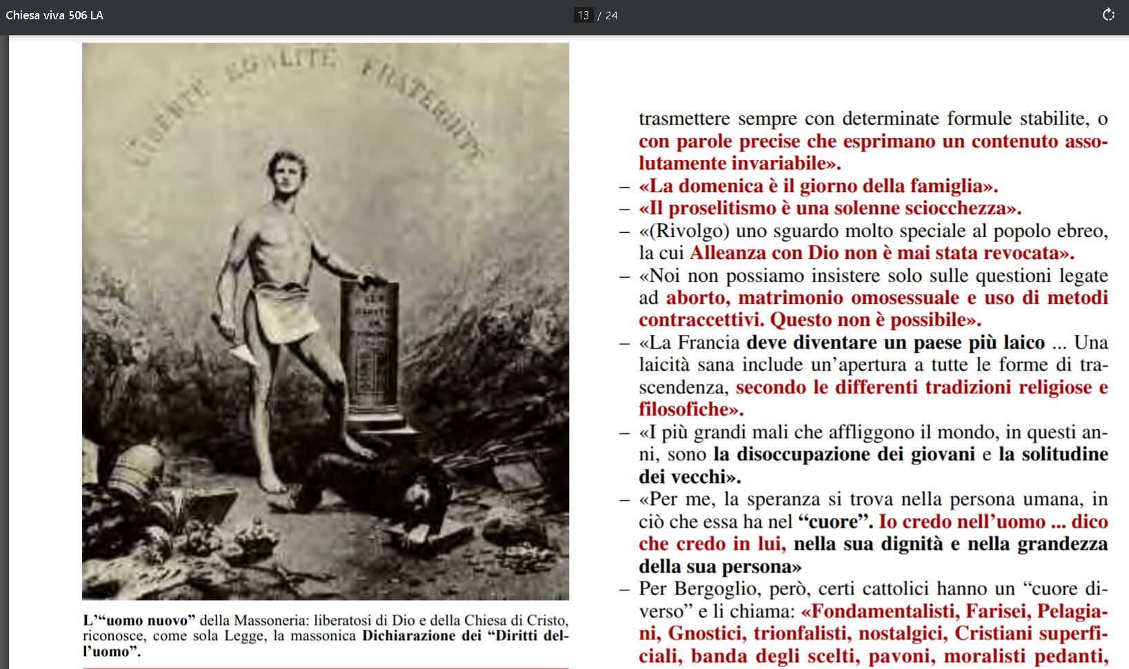 Non so, se si offende qualcuno, ma a me, la promozione umana, era una cosa che non mi interessava molto, e anzi nel mio cuore criticavo – ingiustamente – la Chiesa Cattolica per tutte le sue opere assistenziali.