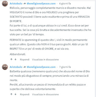 CustodeDellaFedeFALLITA, your problem is not so much CIRCA what, YOU say, it is logical, that every religion jerk can tell said, “only with my abomination, you can save your soul.” therefore, I do not condemn you for what you say, but, because you are without love, and without mercy, while we all know, that, God is infinite love, and, Holy Allah is also full mercy, that is my God Holy YHWH? He no could do never do evil:against to honest people and peaceful! or, that he sacrified his own life for the sake of justice and truth, so sinners and prostitutes, agnostics precede you and me in the Kingdom of God .. because, this is the truth “we are two hypocrites!” your behavior? is outrageous! your god? is not credible