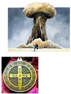 Croce del Santo Padre Benedetto. Croce Santa sii la mia Luce e non sia mai il dragone mio duce. Va indietro satana! Non mi persuaderai di cose vane. Sono mali le cose che mi offri, bevi tu stesso il tuo veleno. Nel Nome del Padre, del Figlio e dello Spirito Santo +. Amen!