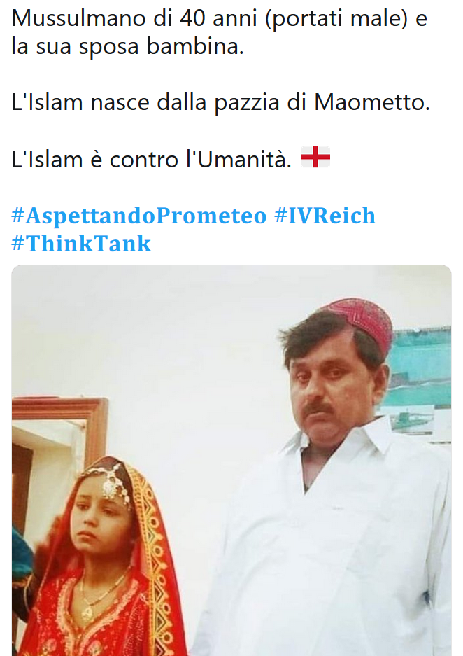 Sharia Dhimmi Schiavo AKBAR ] Bull Doc [ tu sei un corrotto! infatti, tu analizzi il mio errore formale (che è una forma semplificativa del linguaggio) e non vedi il gigante mostro Maometto LEGA ARABA.. altro che stupro delle bambine di 9 anni, in questo sistema islamico, di totale e sistematica degenerazione sessuale, tutte le donne sono stuprate, quindi la coesistenza pacifica tra tutti i popoli per colpa della sharia è resa impossibile! QUESTO PORTERÀ ALLA GUERRA come è già avvenuto tante altre volte in passato!… ma tu sei un troll maligno, e ti rimprovera lo Spirito SANTO!